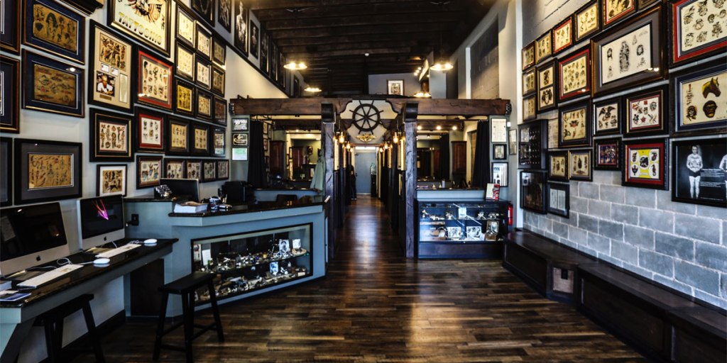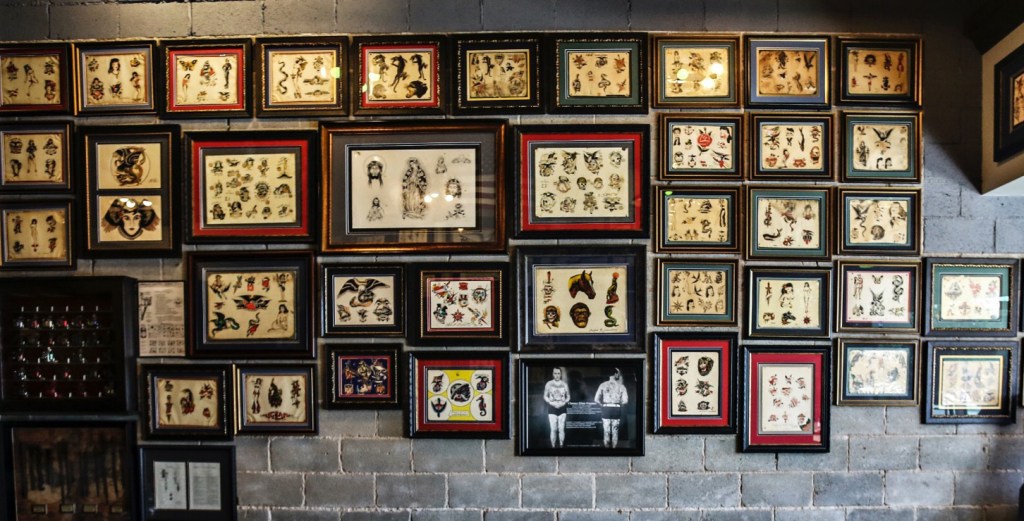 Now 35 years later the arcade has been re-opened by Professional tattoo artist and Oceanside native Jason Betz. After years of collecting and traveling thousands of miles in search of artifacts from the arcade. We’re grateful to announce that the entire flash/folk art collection that hung on the walls of the original arcade is now home and on display at the Arcade once again. The arcade houses a rare look into the history of tattooing on the west coast. covering multiple era’s of tattooing, these images were created in times when America was going through social and political change.. The Powerful Folk art at the arcade stained the skins of our sons, Fathers, and Grand fathers before they went to fight..From powerful chest eagles, to pigs and chickens, and lovely pin ups, All these classic designs speak of times past and hold deep meaning to the tattooers who created them. they will forever hold a sacred place in American tattoo history. We welcome you to “The Arcade”